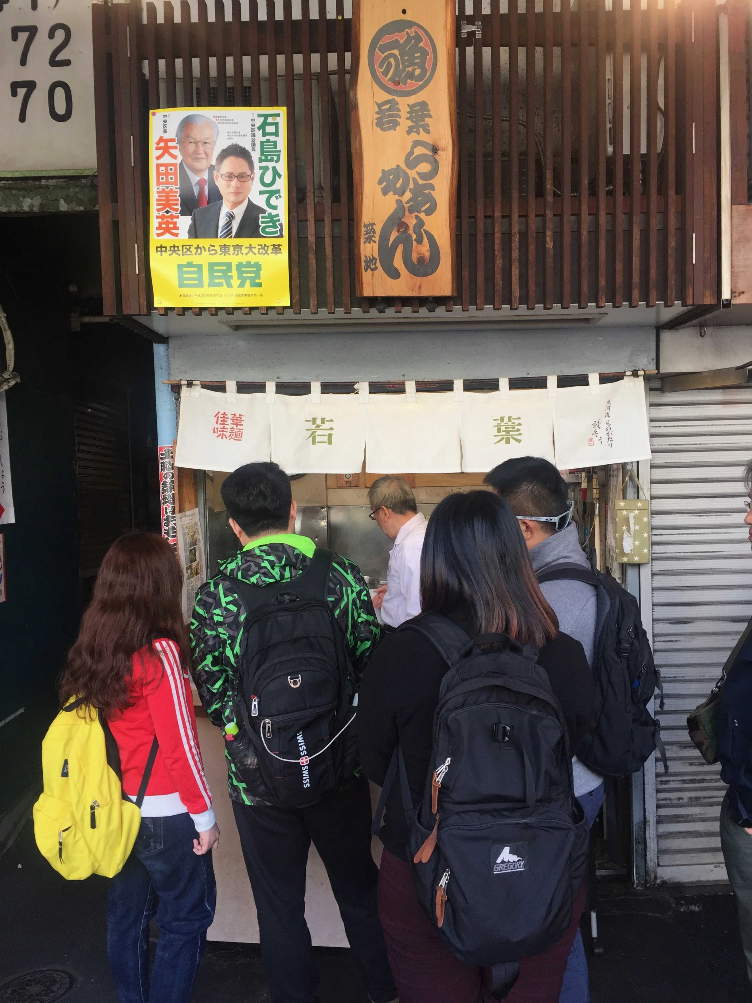 The morning we landed in Tokyo, we headed straight for Tsukiji Market (Tsukiji Market has since moved). The first place that caught my eye and nose was this tiny Ramen stand that a ton of locals were lining up for. The master chef look totally legit as did the bowls of ramen and all the smells wafting out from the stand.