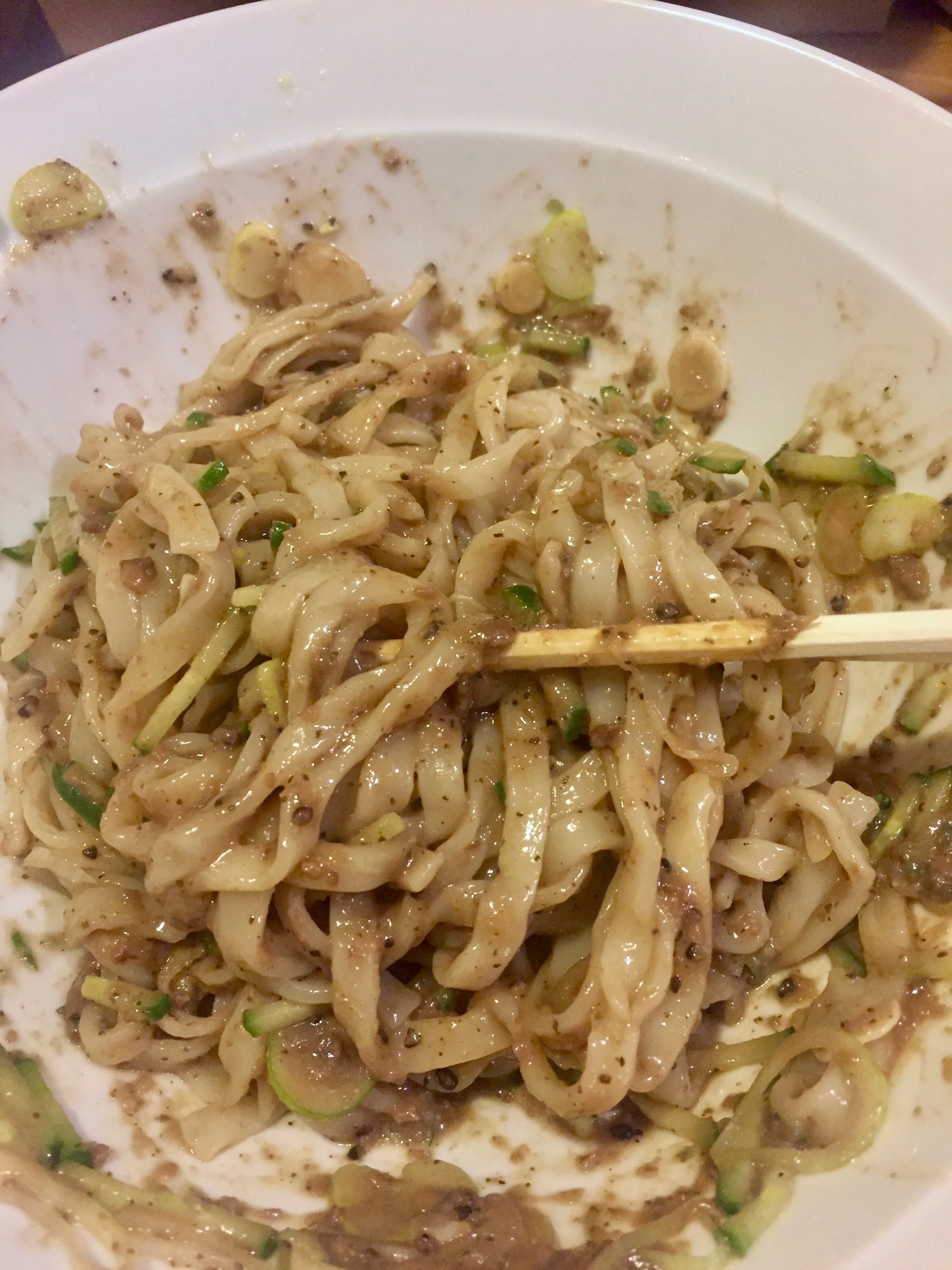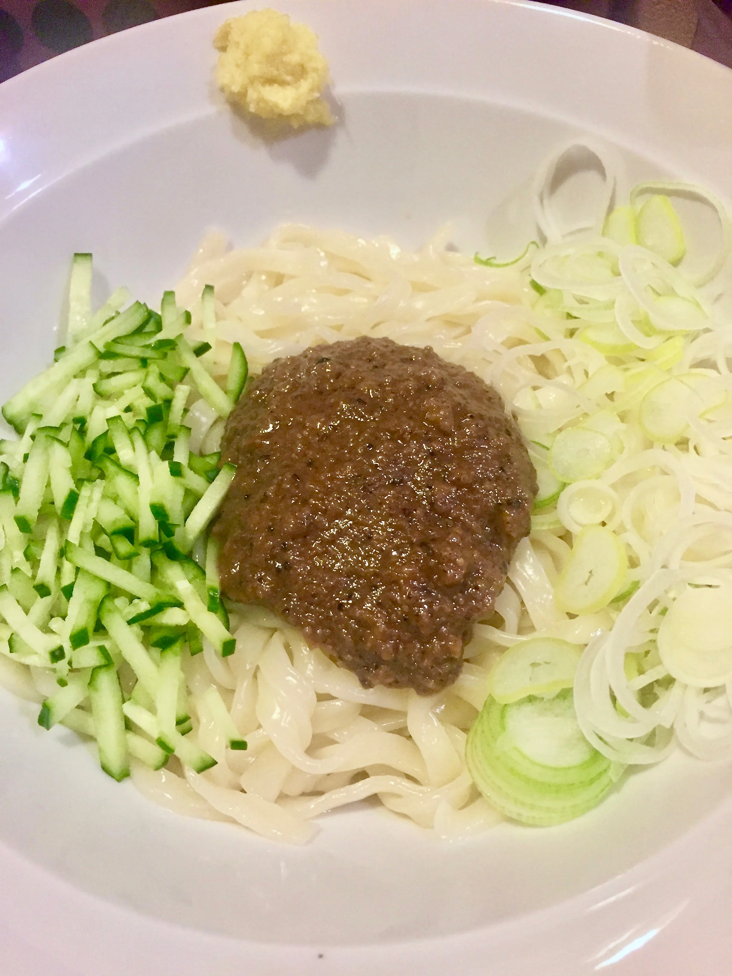 We stayed in residential area of Setagaya for a couple of days during our stay in Tokyo and went wandering around one night in search of an authentic noodle shop. We found ourselves in a tiny place called Jyajyaoiken, which served only one thing - a soupless noodle variation. It actually reminded me of a Chinese dish called Zha Jian Mian since it had sliced cucumbers, ginger, green onions, and some kind of meat/bean sauce in the middle. No one spoke a lick of English nor did any menus have any English. We resorted to pointing and watching what the other locals did.
