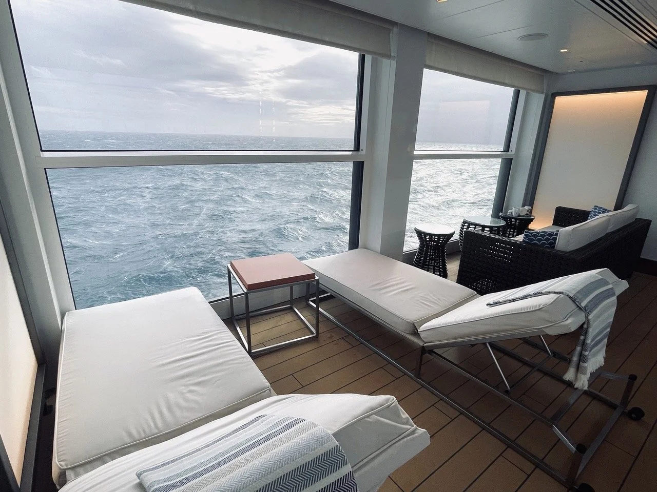 The recliners facing the ocean next to the indoor pool - perfect for zoning out and reading a book on those sailing days