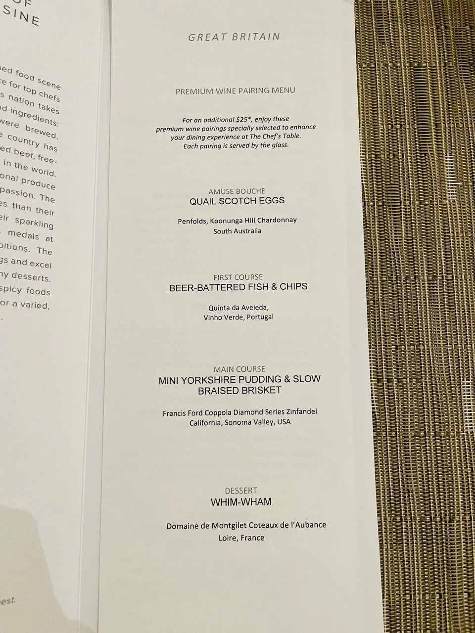 Chef’s Table - This special restaurant serves a five-course tasting menu that changes every three days. On our cruise, they specialized in British food, Asian food, and Norwegian food. We preferred the menu items at the other restaurants, but your own mileage may vary!