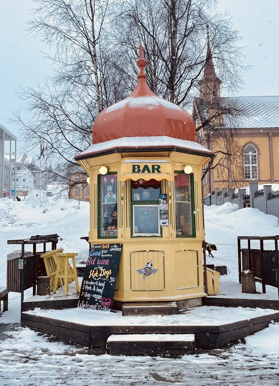 It was so nice to be able to disembark and walk around on stable ground. We were also blessed with blue skies so we made it a point to walk around town a bit. Since it was Sunday, many stores were closed except for this tiny bar that also served reindeer hot dogs!