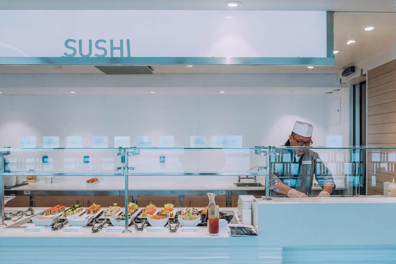 If you like seafood, at dinner there were always steamed king crab legs, freshly made sushi, and on various days there were scallops, soft shell crabs, British style Fish n Chips, Norwegian Salmon, Lobster, and much more.