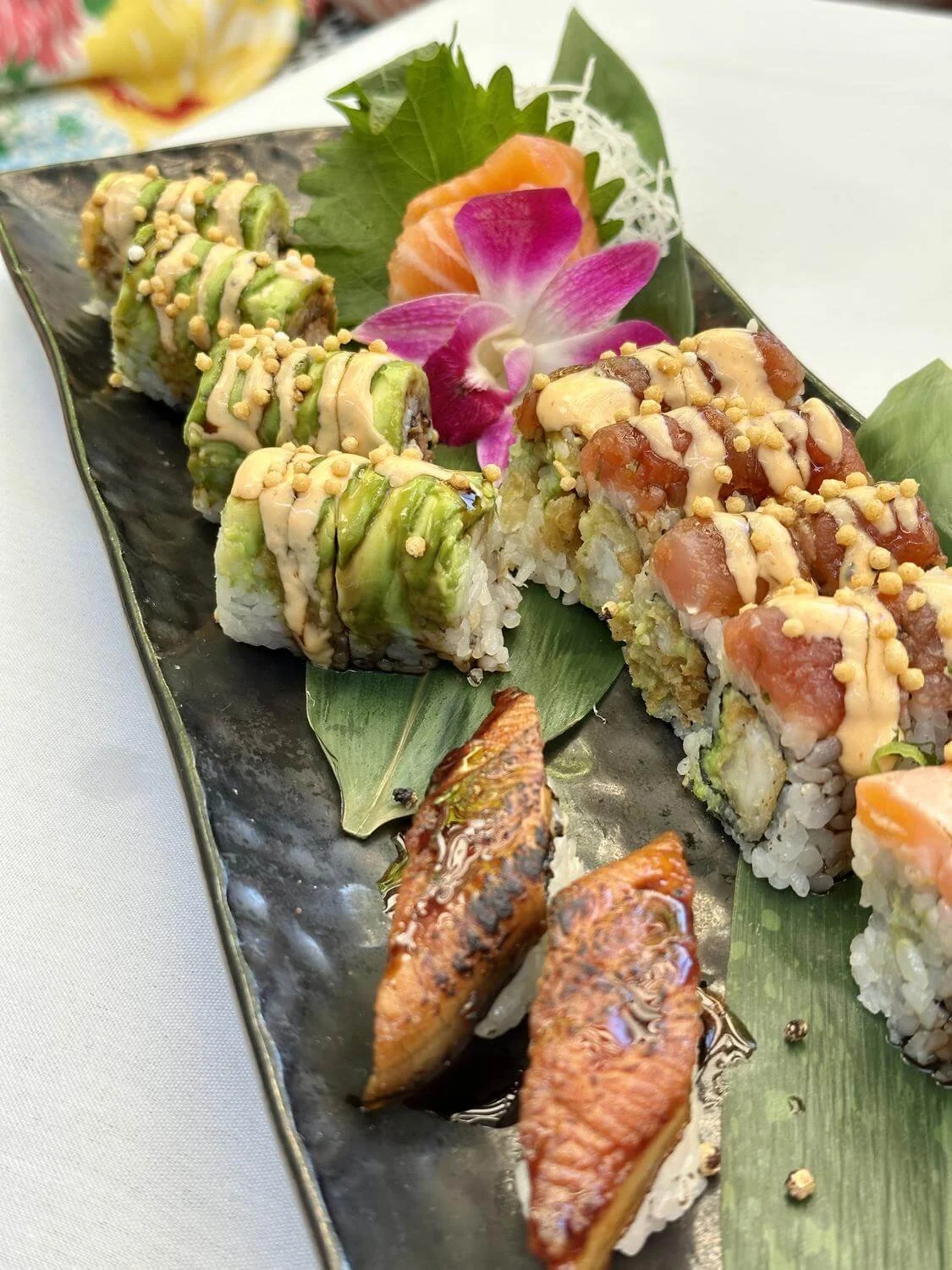 We got the Truffle Scallop Crudo, Hoka Sake Roll, Yutaka Roll, Unagi, Sake, and Hamachi Unagi for dinner, and the Tres Leches for dessert.
