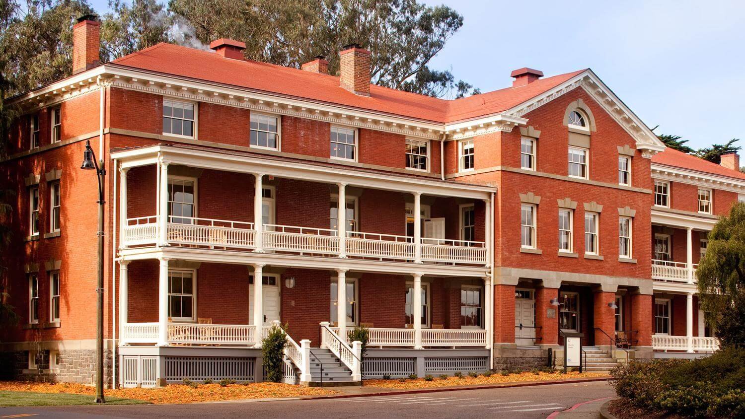 The building used to house military officers, with the red brick exterior and neat interior a nod to the Presidio’s military past.