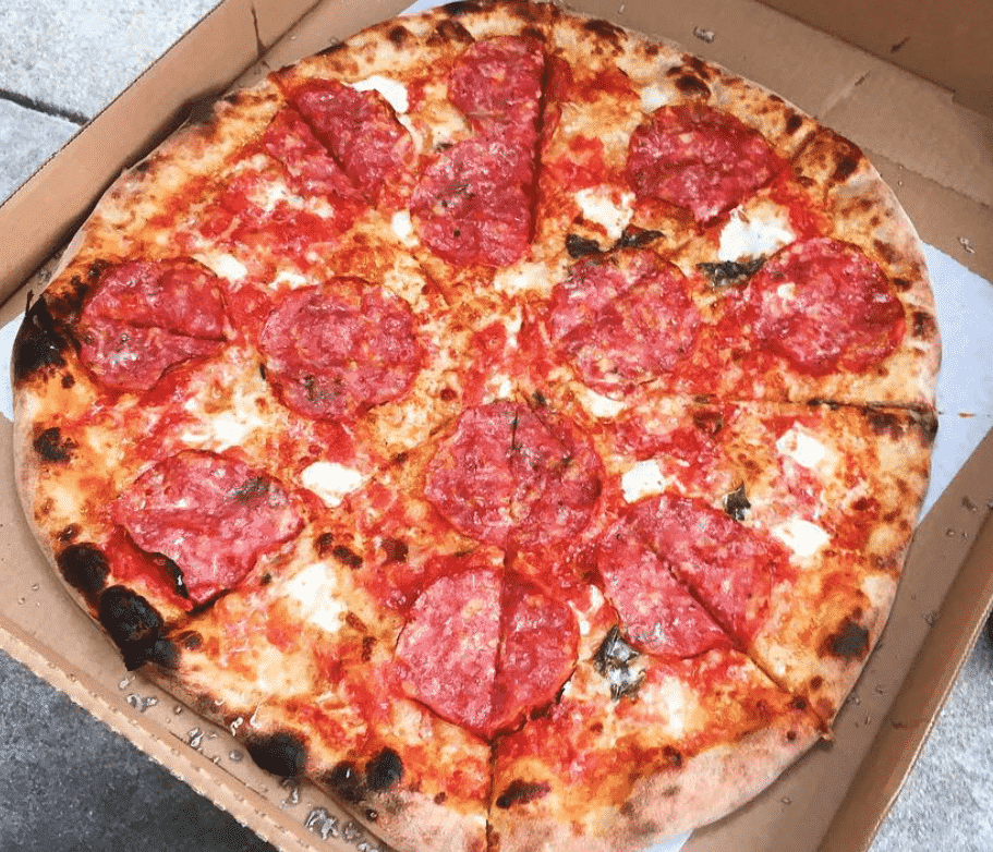 What I can say is that the pizza crust is light and nicely blistered! The toppings are top notch - you can really taste the quality.