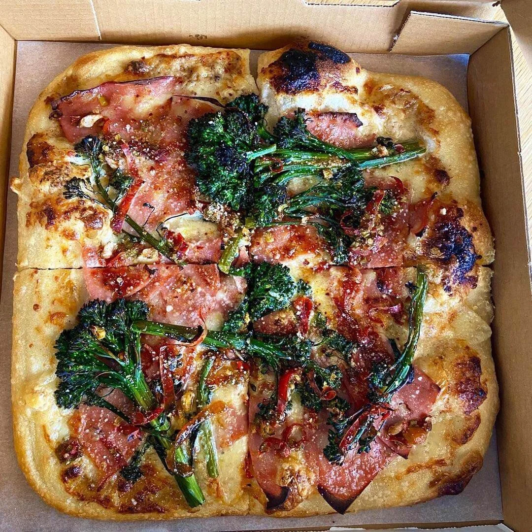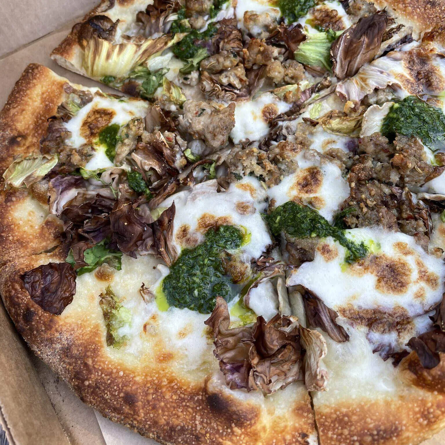 While most pizza shops lean towards a Neapolitan way of making pizza, the Roman method is more like an airy focaccia-like body but still has a good crispy crust. When you bite into the pizza you’ll notice very large air bubbles in the crust.