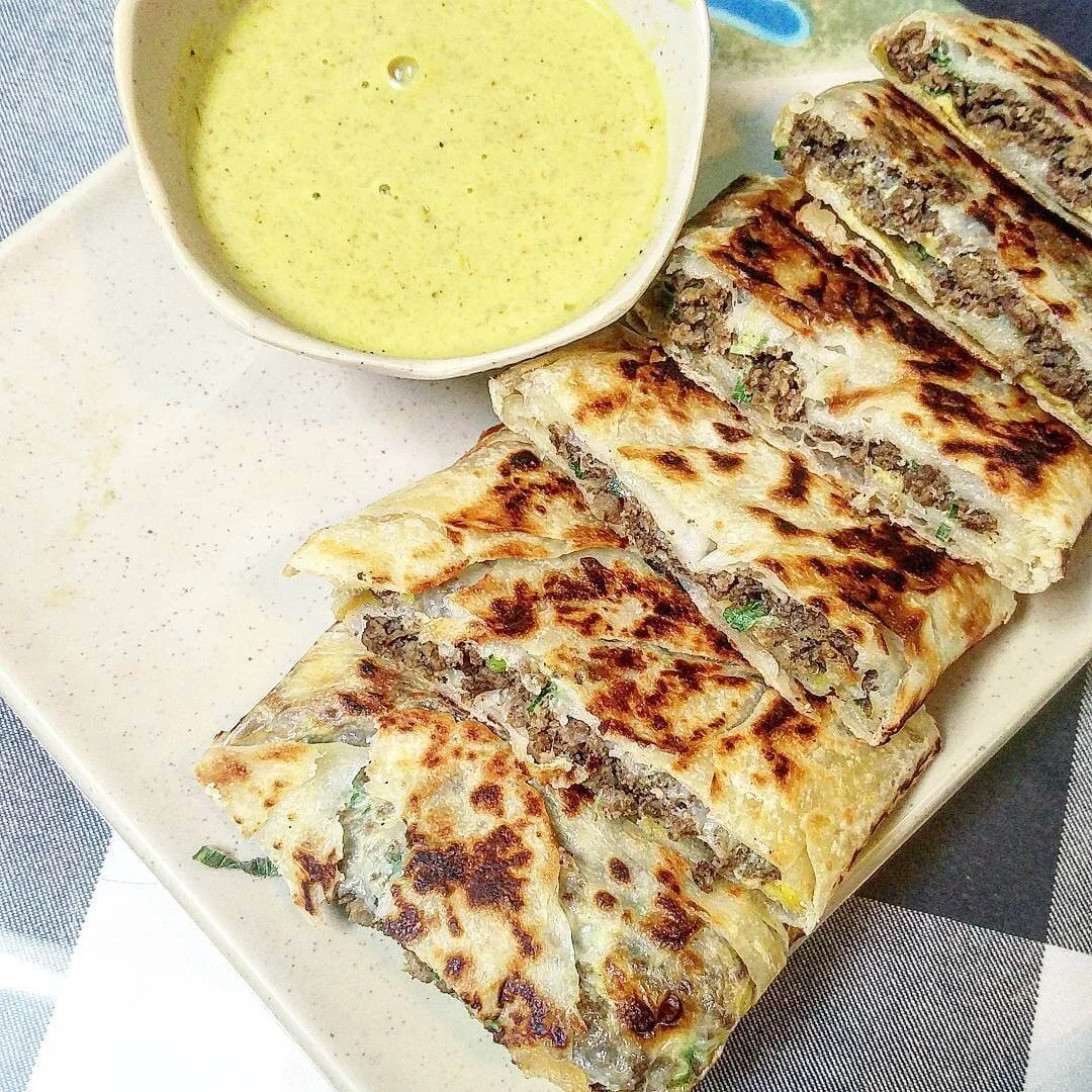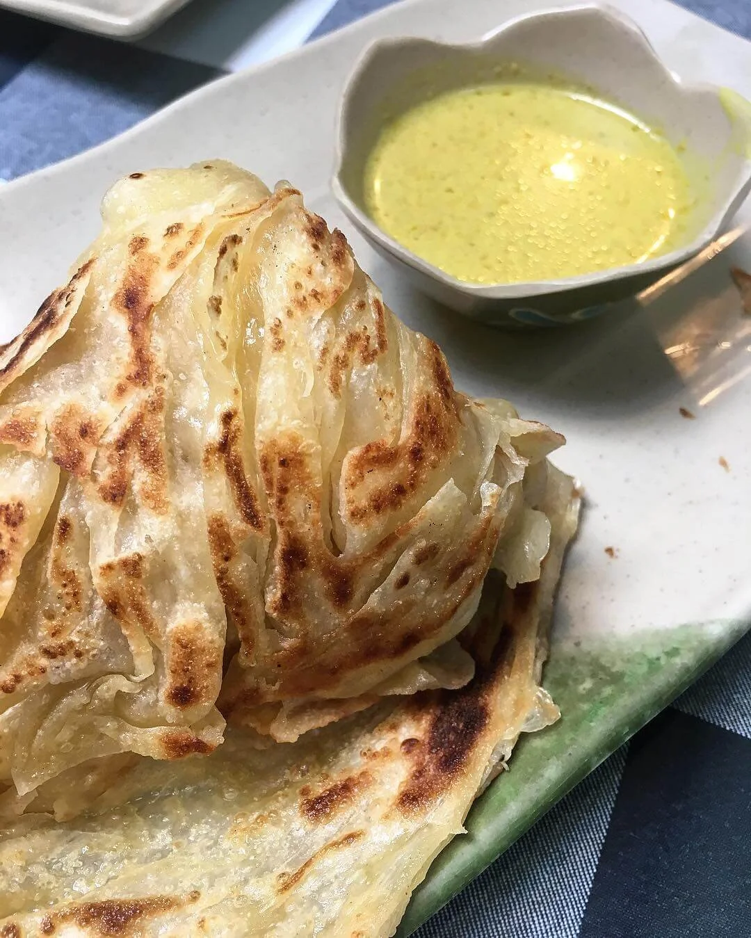 The Roti Pratha is a buttery, flaky flatbread served with a curry dipping sauce and is a total crowd-pleaser.