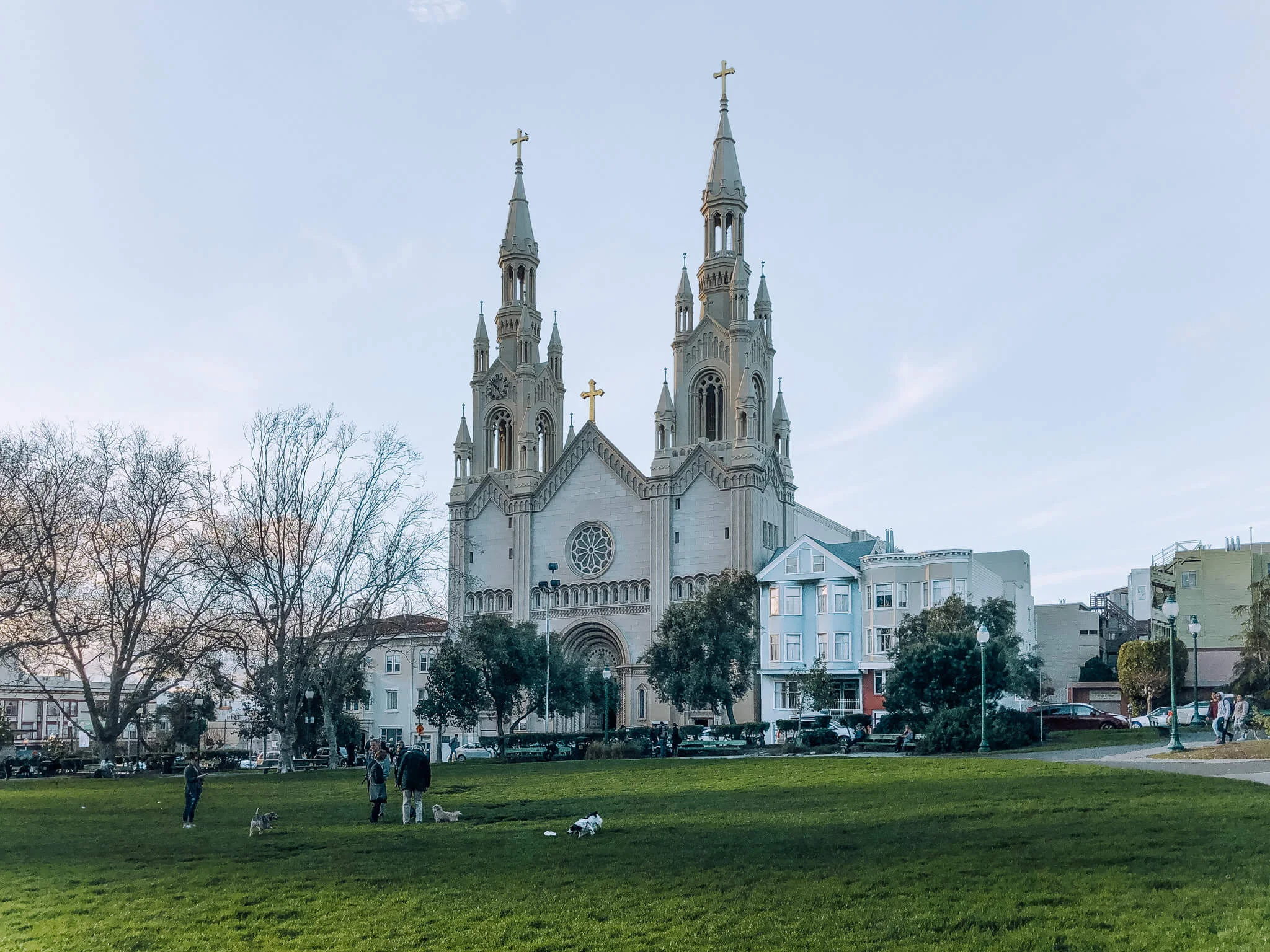 Like a cleaner, smaller, and chilled out version of Dolores Park - Washington Square Park has a nice blend of dogs playing, picnickers, and Chinese women doing aerobics. All of it is framed by tall trees and the beautiful frontage of St Peters and Paul Church. I love sitting on a bench here during golden hour at sunset. The colors bouncing off everything is breathtaking.